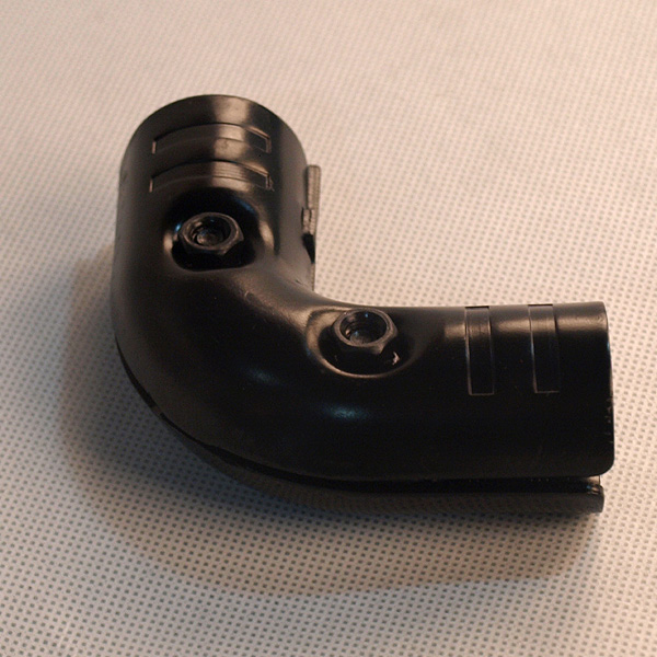 该产品统称【黑色烤漆金属连接件】,俗称【弯头接头】,型号规格为【BSX-DL16P】,适用于两根管之间90转角连接,让连接处带弧形而变得更加圆润美观,周转车扶手、办公桌外侧转角处用得较多。